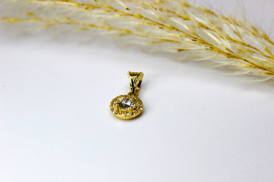 Solitär Anhänger 14K Gelbgold umrandet von Zirkonia-Steinen