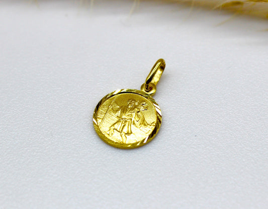 Rundplatten Anhänger des Heiligen Christoph Christophorus aus 14K Gelbgold