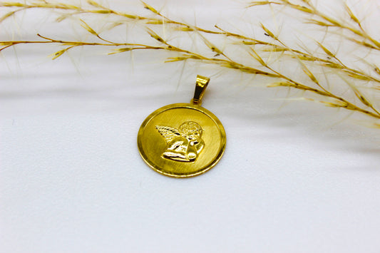 Rundplatten Anhänger mit Erzengel Rafael Abbildung aus 14K Gelbgold