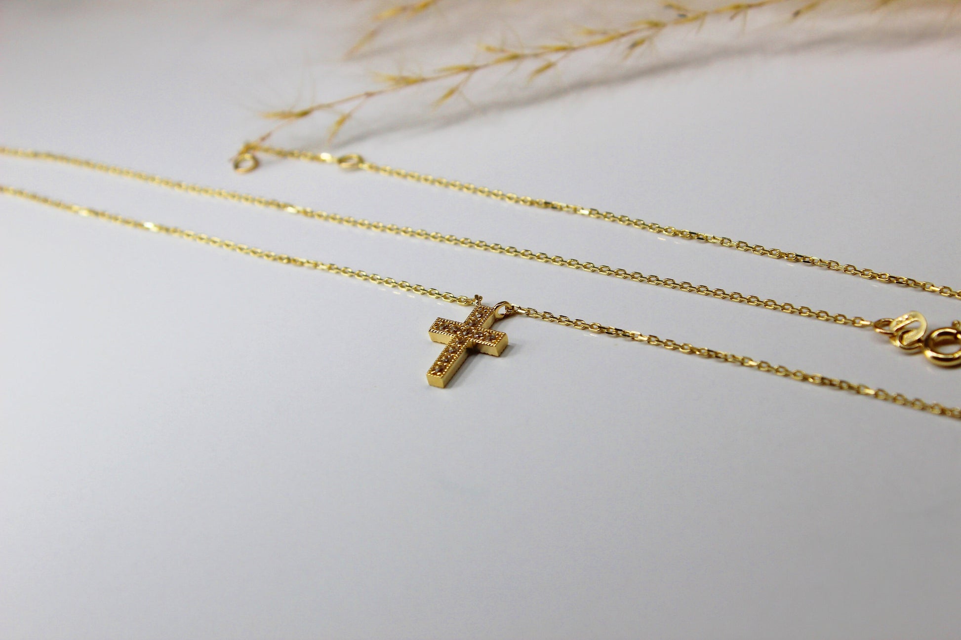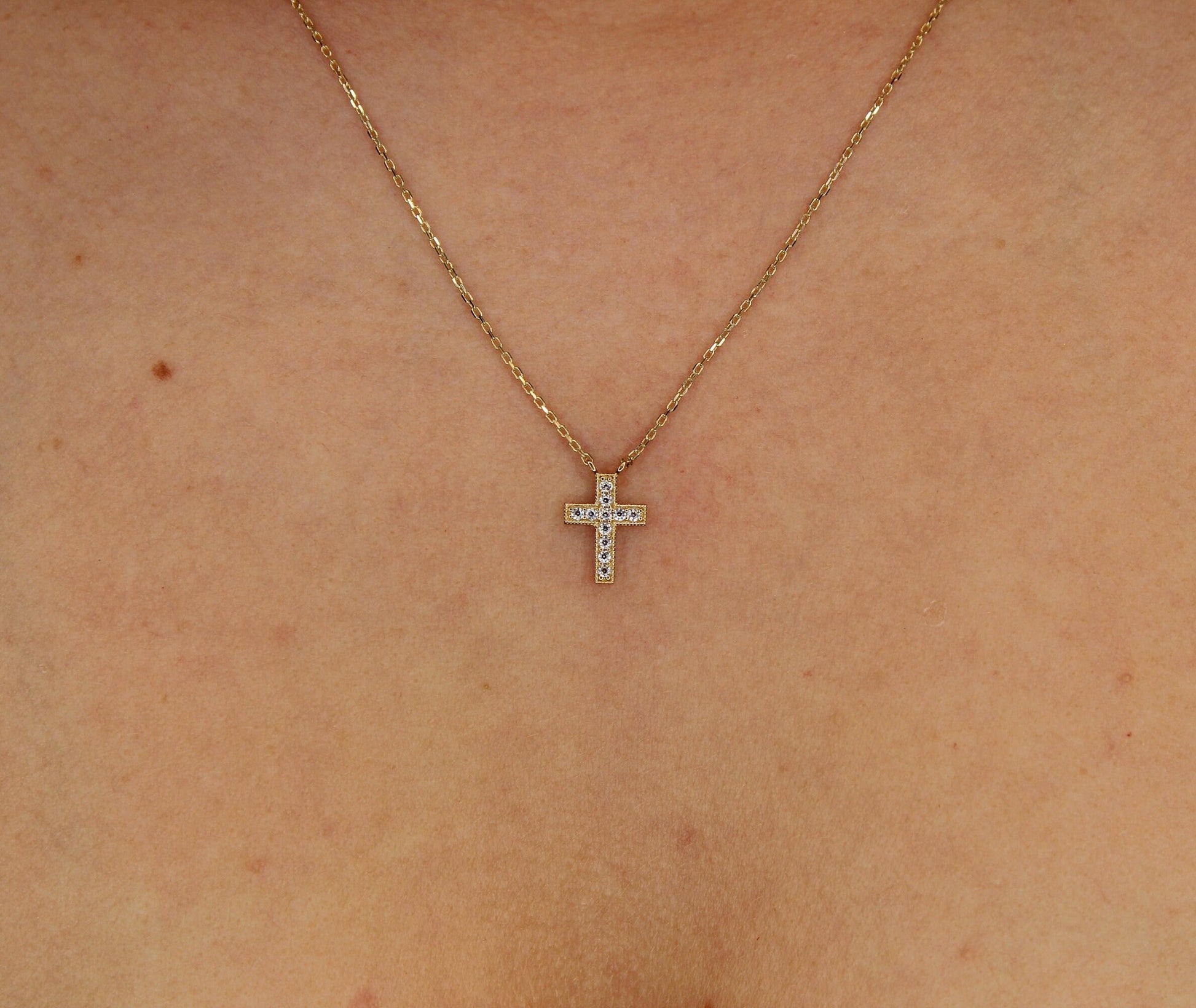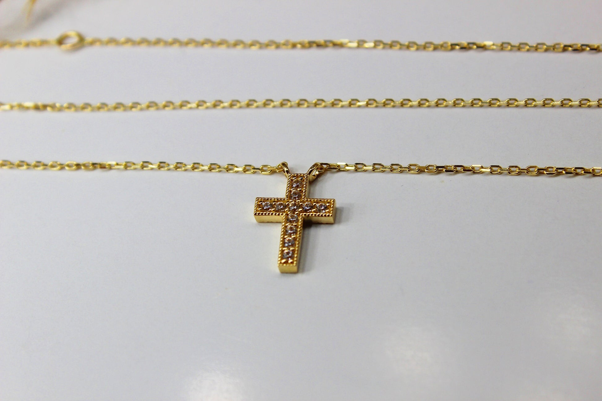 14K Gold Anker Kette mit Kreuz aus 585 Gelbgold verziert mit Zirkonia Steinen