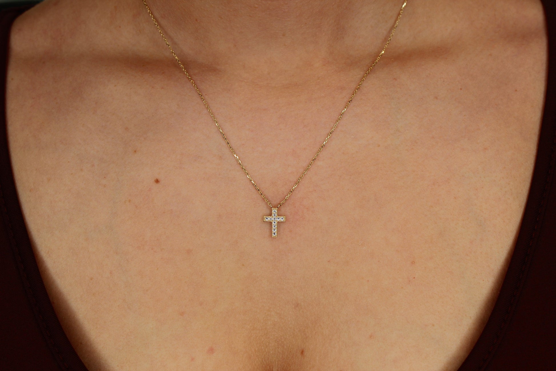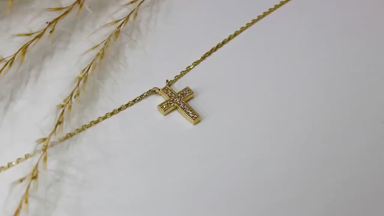 Unsere Goldkette aus 585 Gelbgold vereint elegantes Design mit funkelndem Glanz. Die Kette ist verziert mit Zirkonia-Steinen, die in einer Kanalfassung präzise eingefasst sind. Jeder Stein ist im Brillantschliff gearbeitet, um maximale Brillanz zu gewährleisten. Im klassischen Anker-Stil gefertigt, ist die Länge der Kette zwischen 43 und 45 cm verstellbar. Der Kreuzanhänger, ca. 1 cm lang, verleiht der Kette eine spirituelle Note und macht sie zu einem zeitlosen Schmuckstück für jeden Anlass.