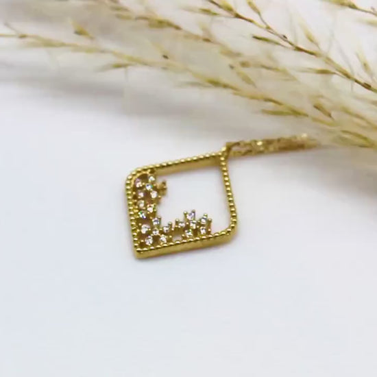 Verstellbare Halskette mit Anhänger in Raute Form verziert mit Zirkonia Steinen in Schneeflökchen Design aus 14K Gelbgold