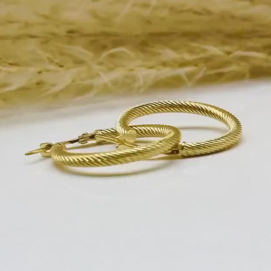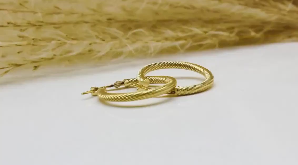 Kordel-Design: Das elegante Kordel-Design verleiht den Creolen eine einzigartige Textur und einen Hauch von Raffinesse, der sie von gewöhnlichen Creolen abhebt.