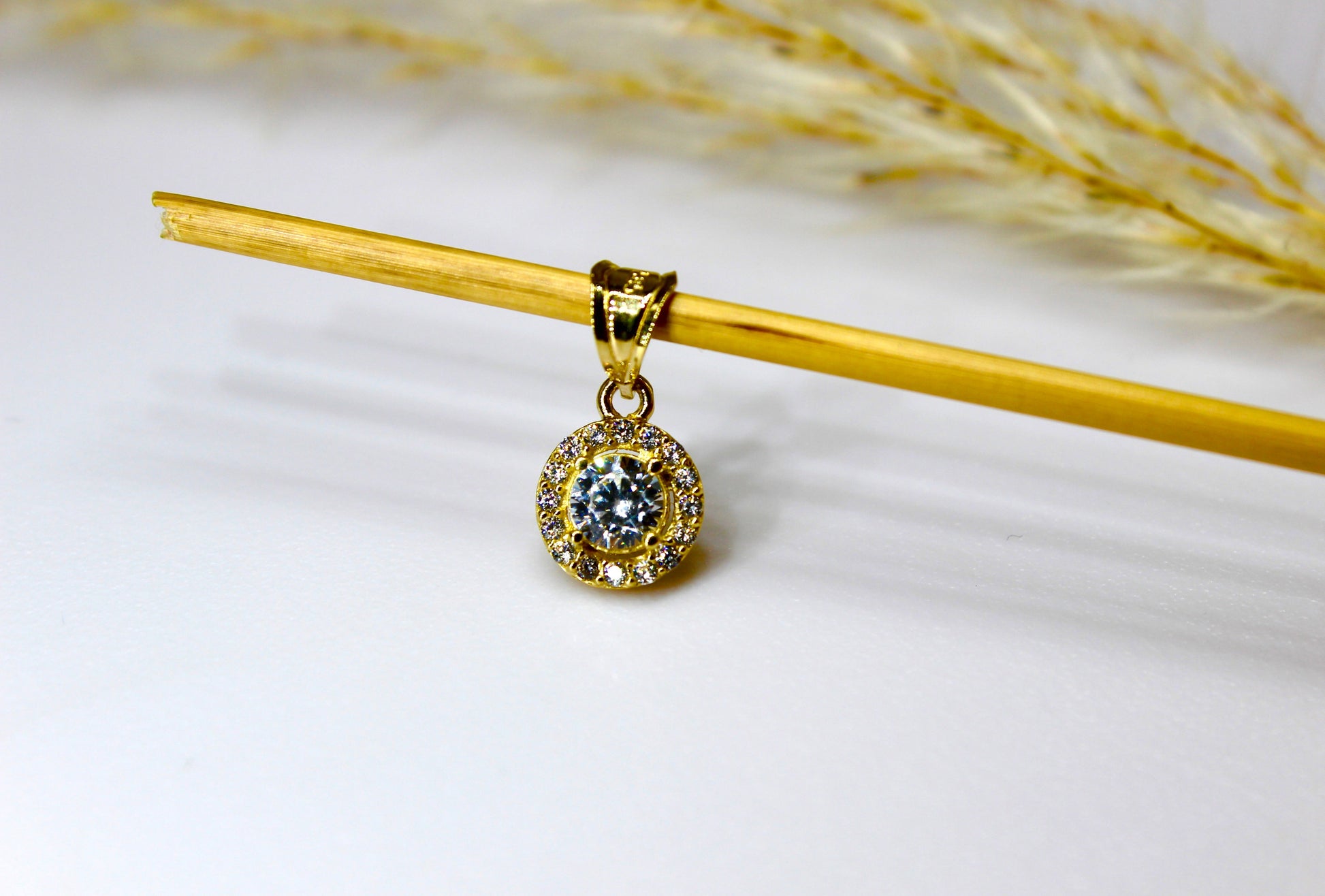 Entdecken Sie zeitlose Eleganz und subtile Raffinesse mit unserem Solitär Anhänger aus 14K Gelbgold. Dieser atemberaubende Anhänger präsentiert einen funkelnden Solitärstein, umgeben von einer Fassung mit Zirkonia-Steinen, die ihm zusätzlichen Glanz verleihen.