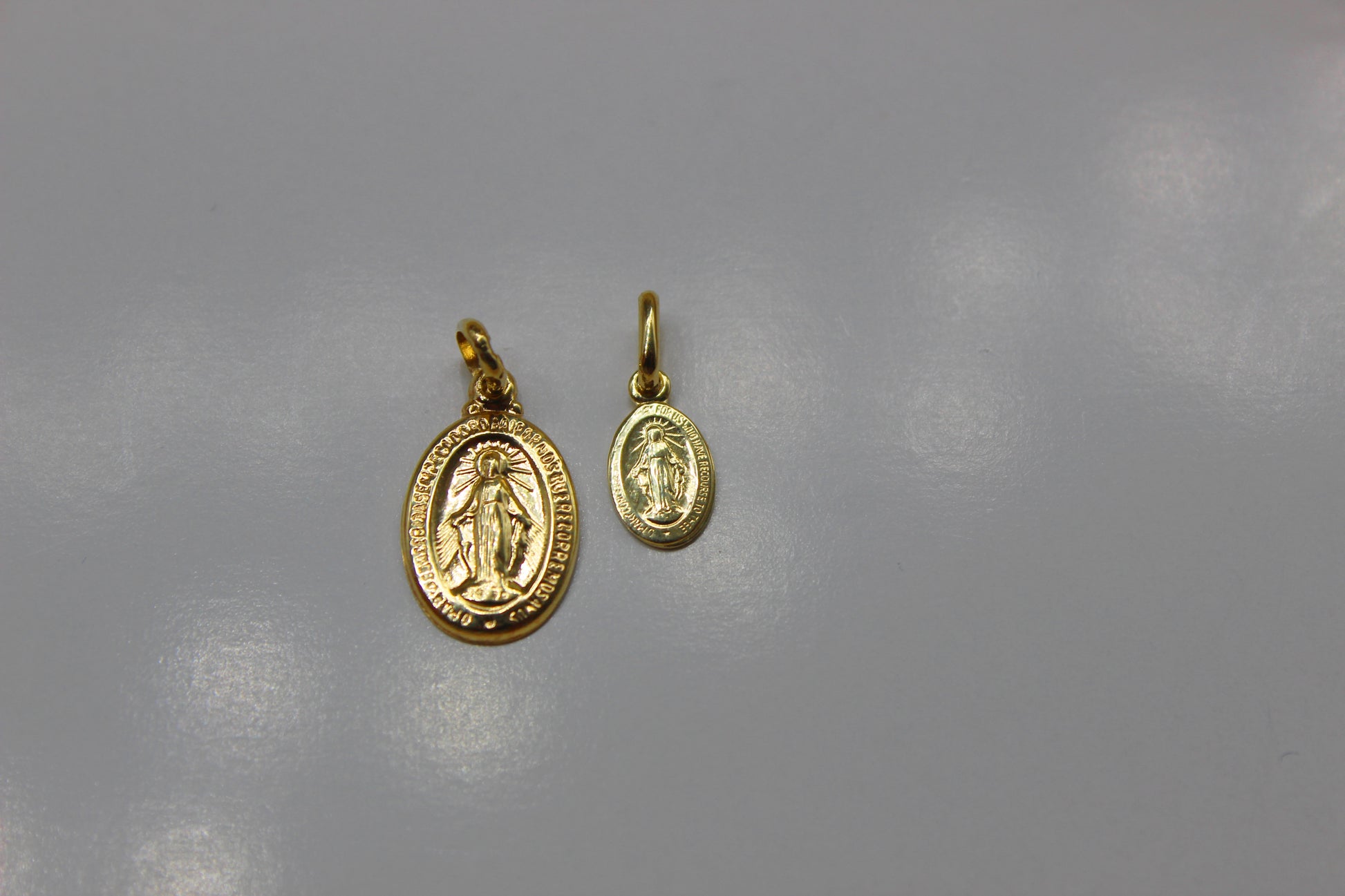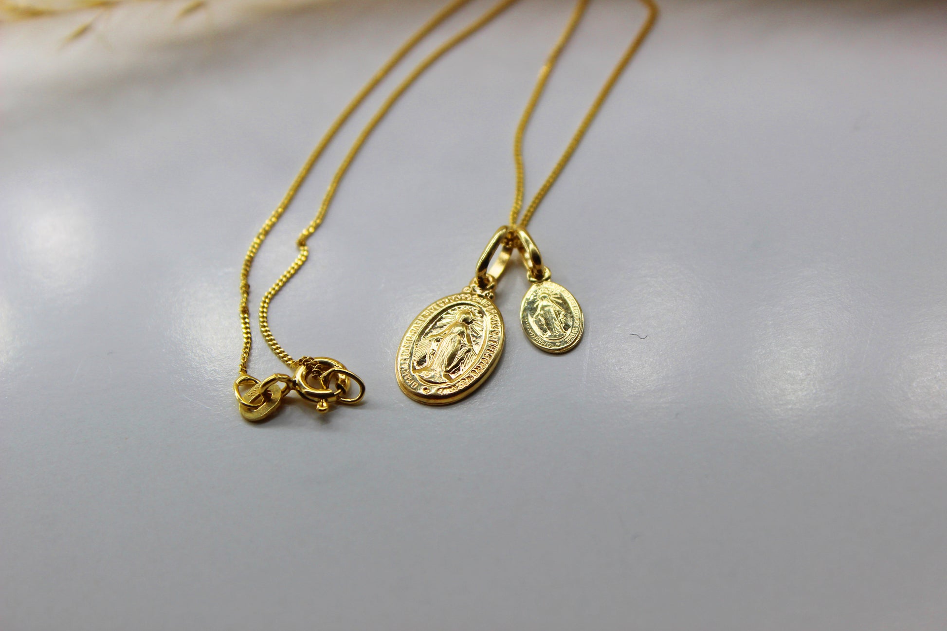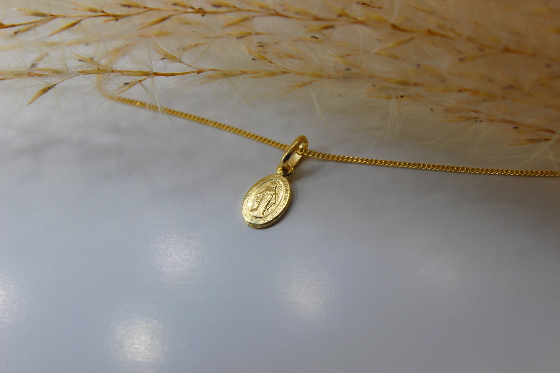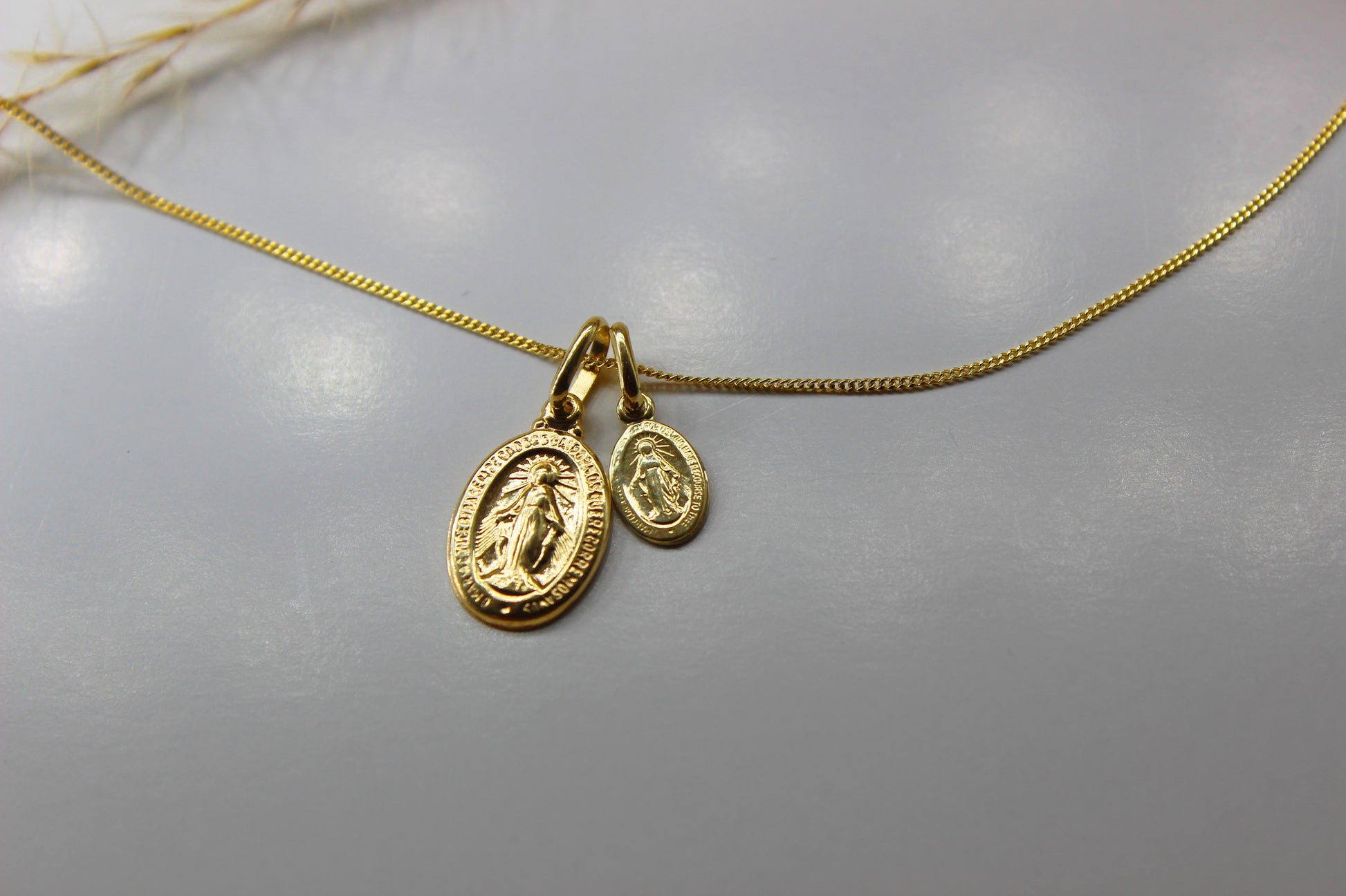 Unser 14k Mutter Maria Gold-Anhänger aus 585 Gelbgold ist ein Ausdruck von Glauben und Schönheit. Erhältlich in zwei Größen, bietet dieser Anhänger eine Auswahl, die Ihrem persönlichen Stil entspricht. Sie können ihn entweder einzeln bestellen oder mit einer passenden Panzerkette.