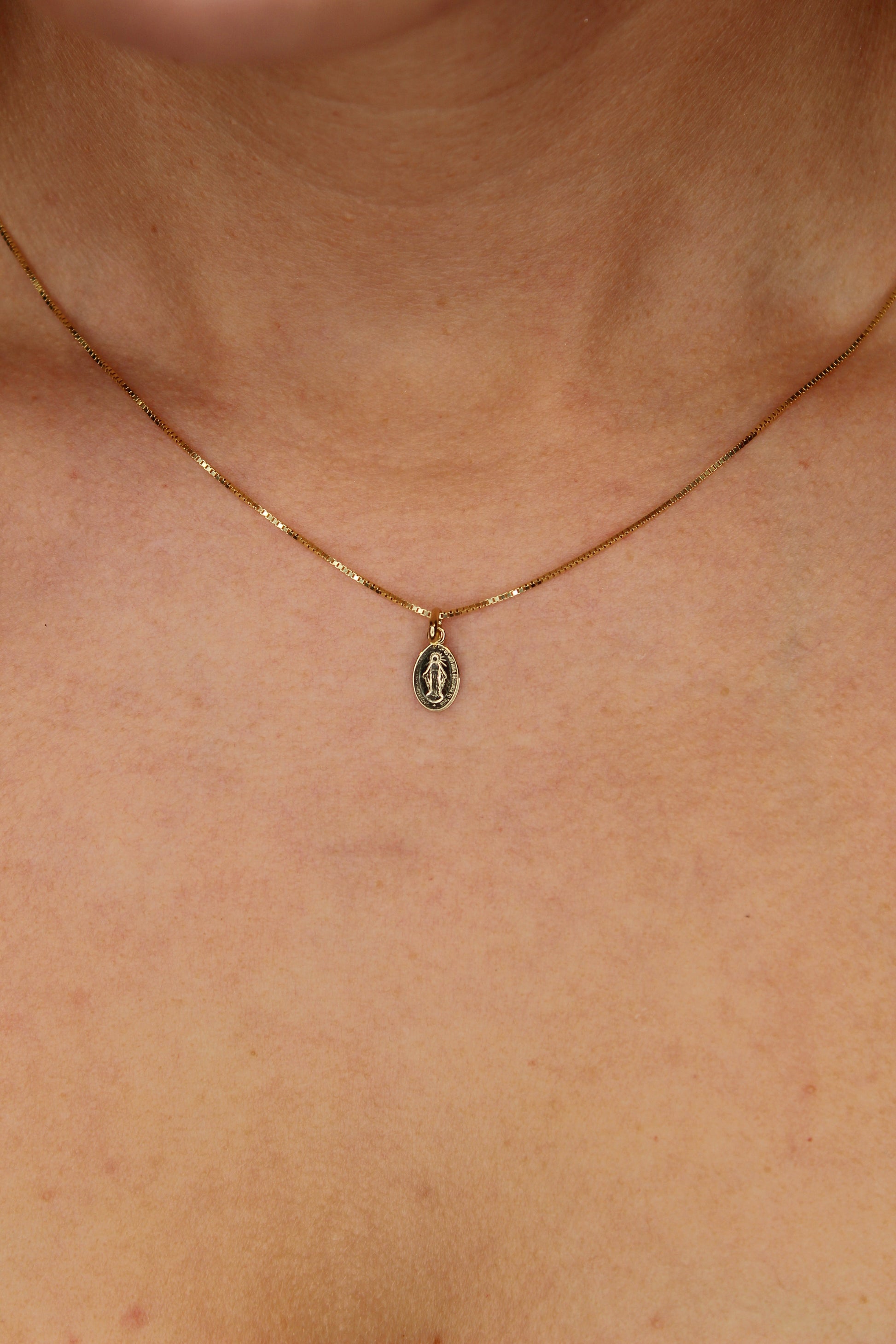 Panzerkette: Die 585 Gelbgold Panzerkette ist eine klassische und robuste Kette, die perfekt zum Mutter Maria Anhänger passt und zusätzliche Schönheit verleiht. Die Gesamtlänge der Kette ist 45 cm.