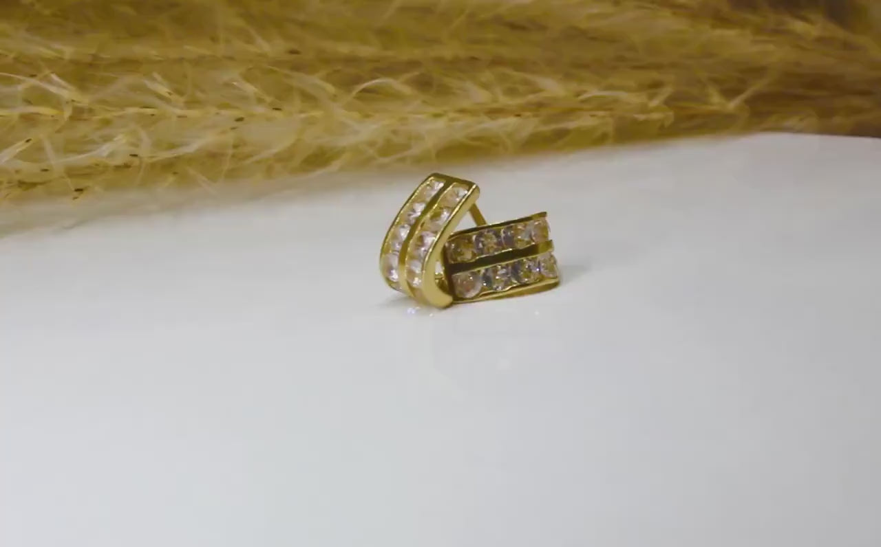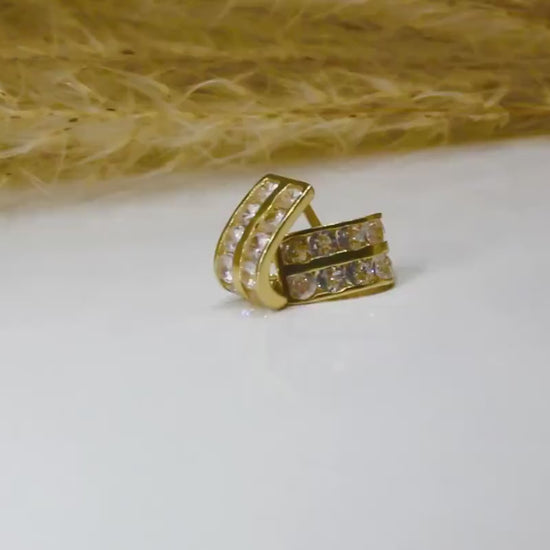 Hoop earrings in 585 yellow gold with zirconia stone / double row horseshoe shape