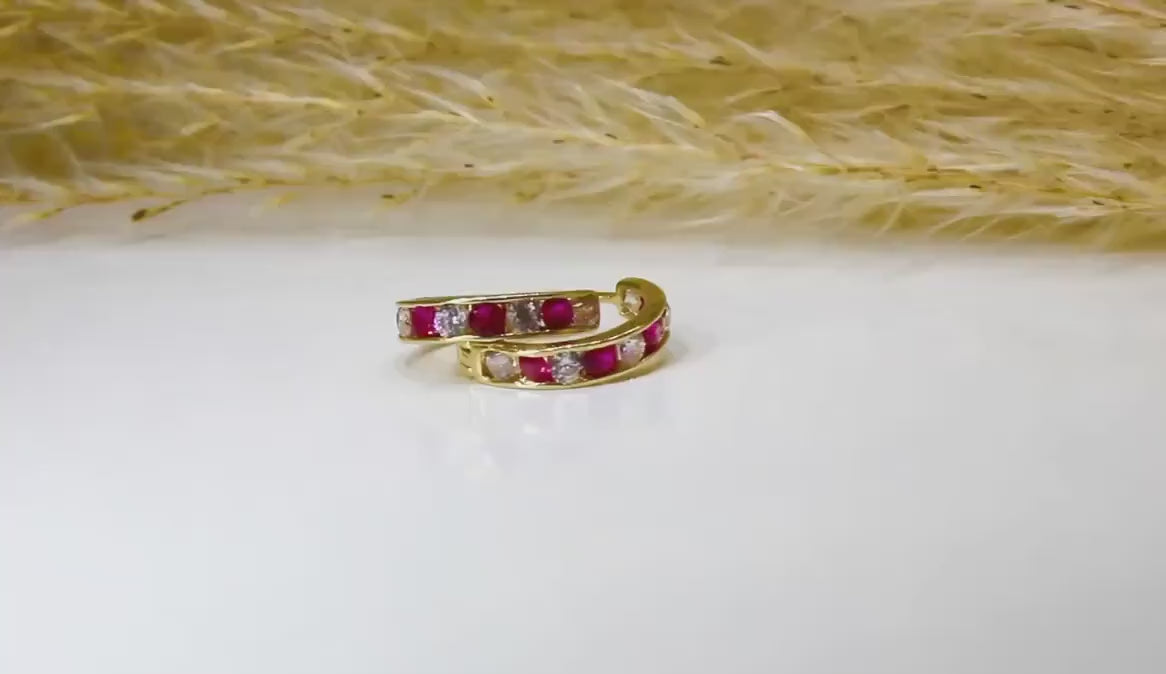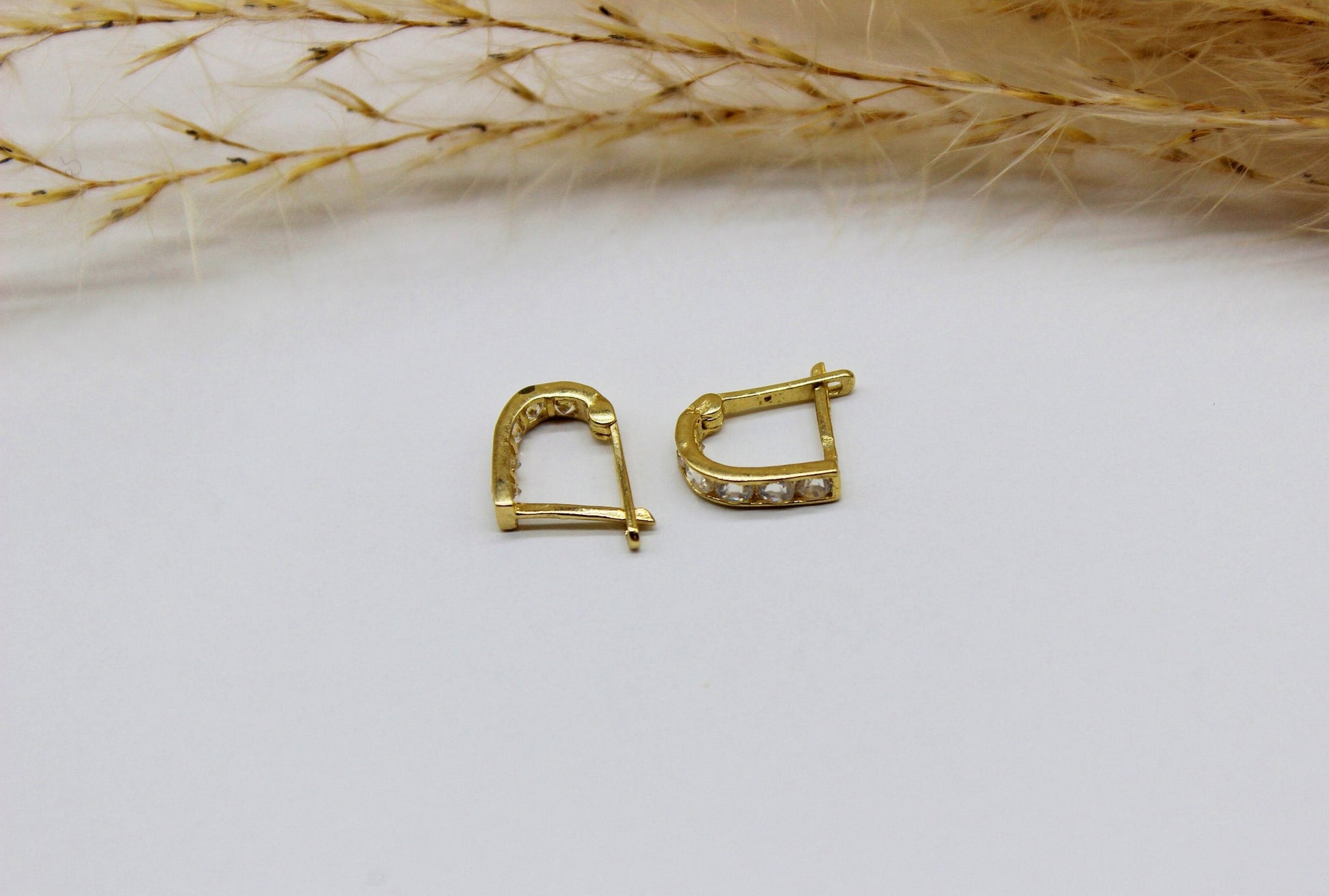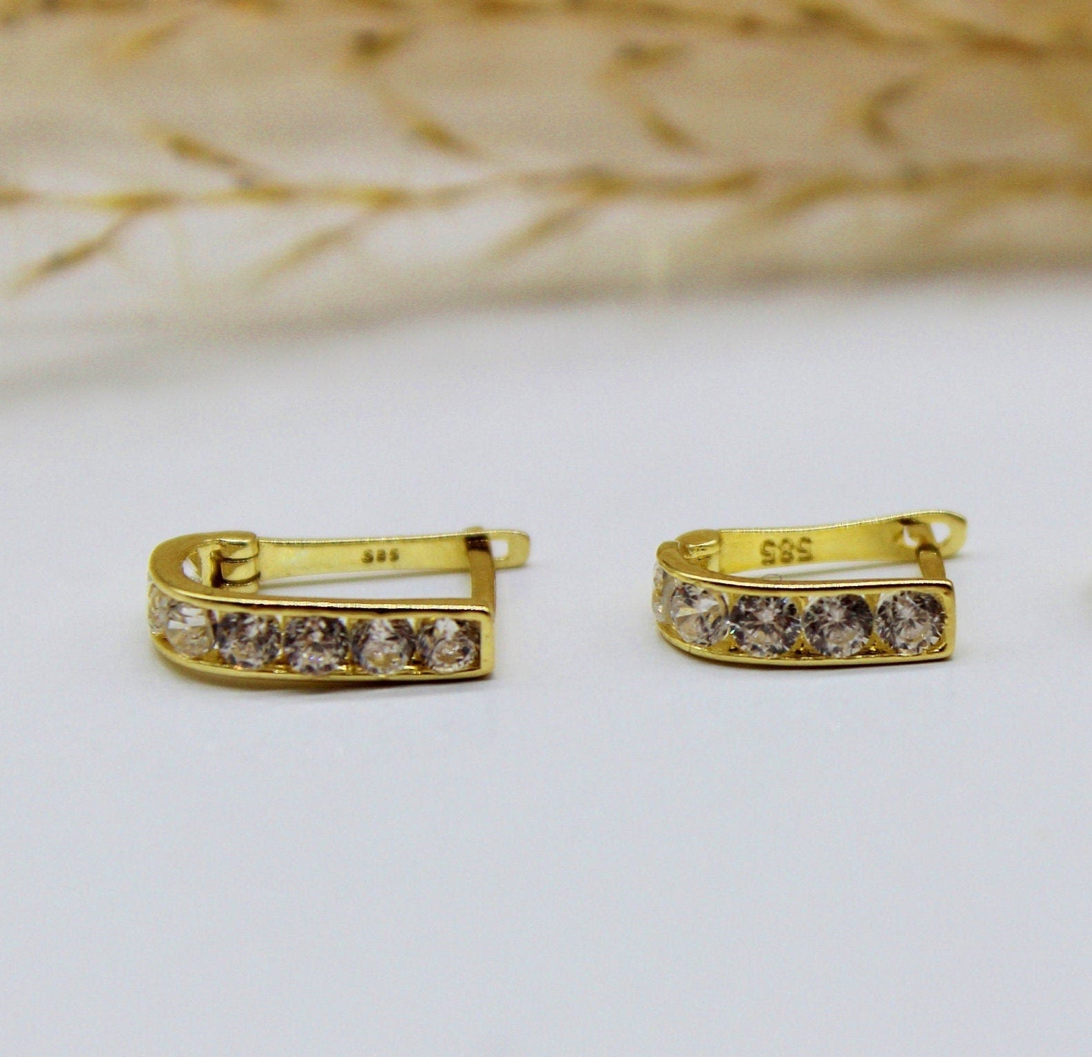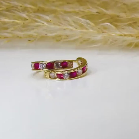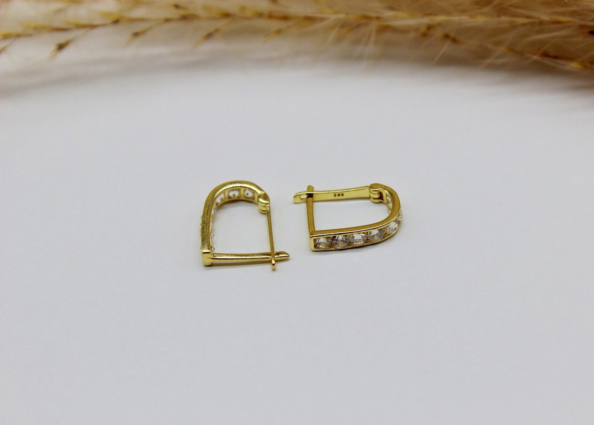 Hoop earrings in 585 yellow gold with zirconia stone / horseshoe shape / different stone colors