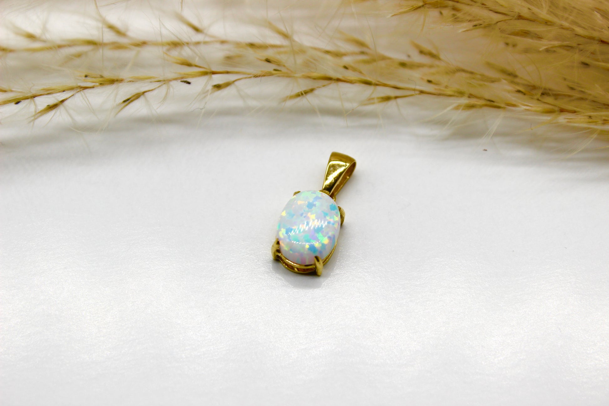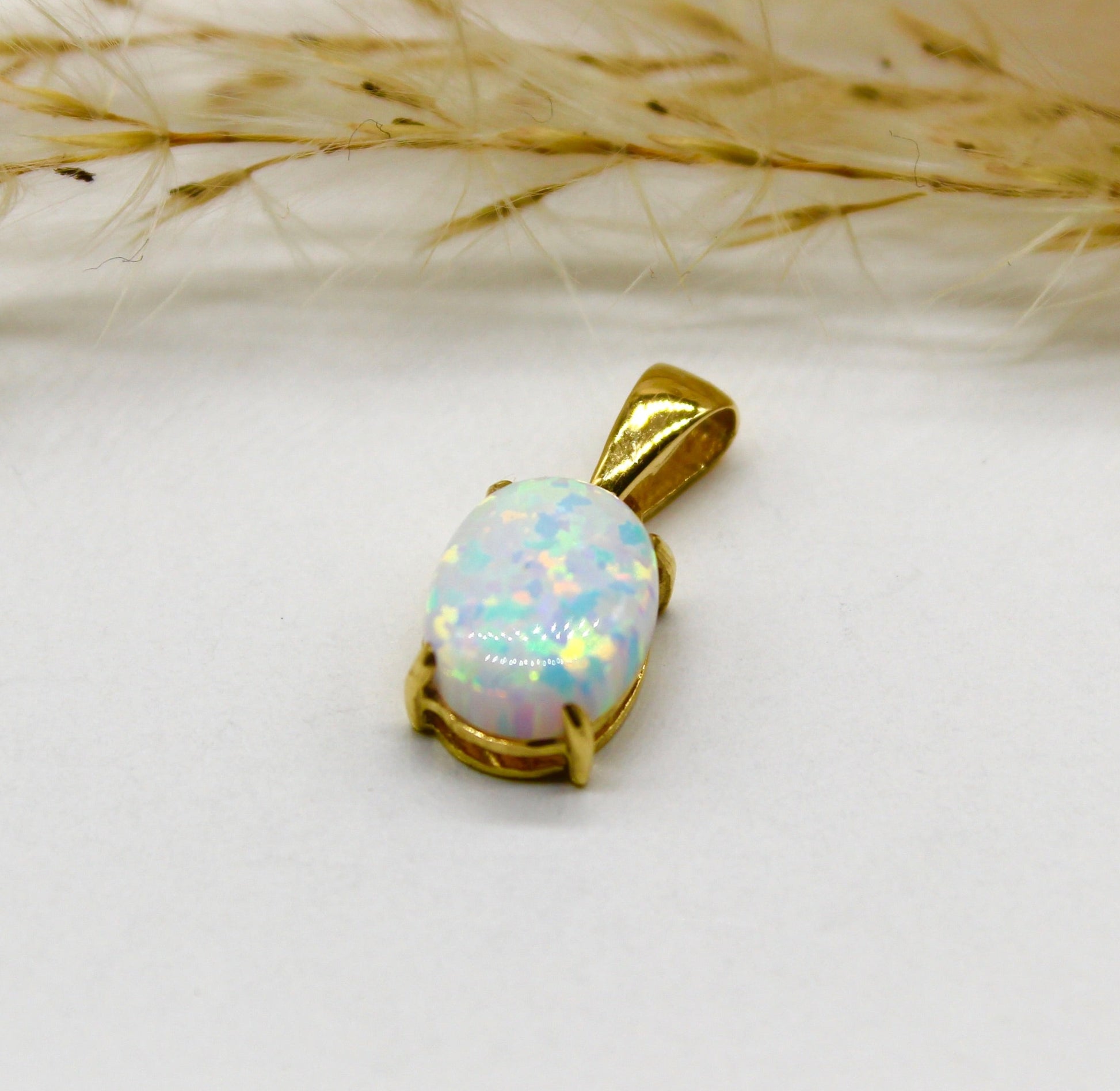 Erleben Sie die zeitlose Schönheit und Eleganz unseres Ovalen Opalit Gold Anhängers aus 14K Gelbgold, kunstvoll gefertigt in einer 4-er Krappenfassung. Dieser Anhänger präsentiert einen glatten Opalit-Edelstein in ovaler Form, der von einem Rahmen aus edlem 14K Gelbgold gehalten wird.