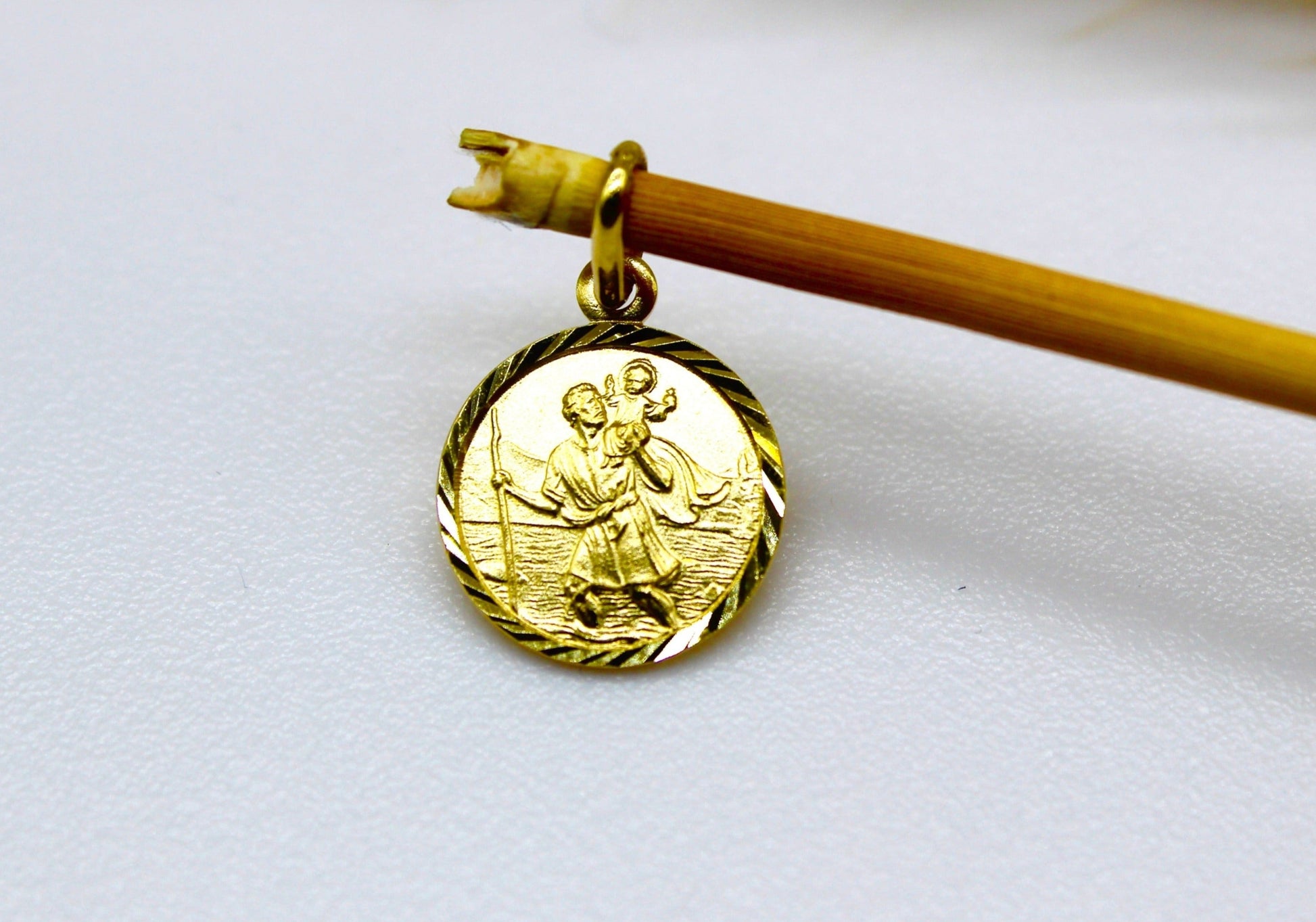 Rundplatten Anhänger des Heiligen Christoph Christophorus aus 14K Gelbgold