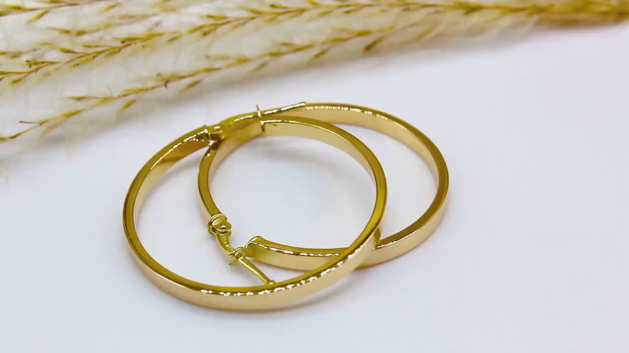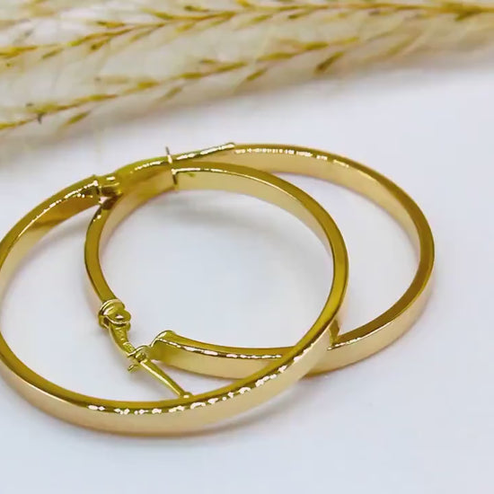 Simple hoop earrings in 14K yellow gold with a flat profile