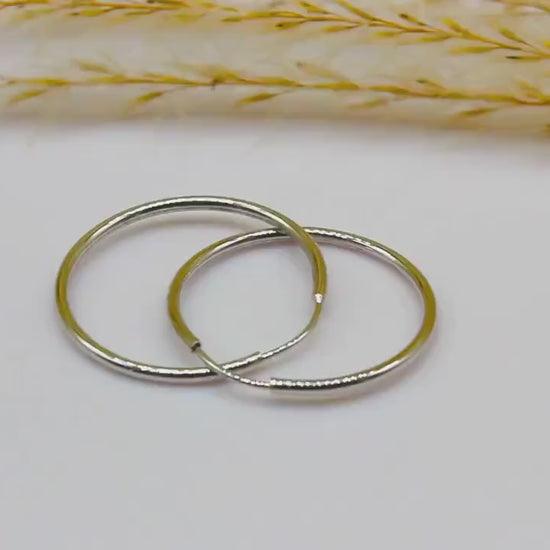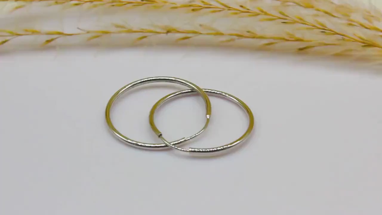 Simple round hoop earrings in 585 white gold