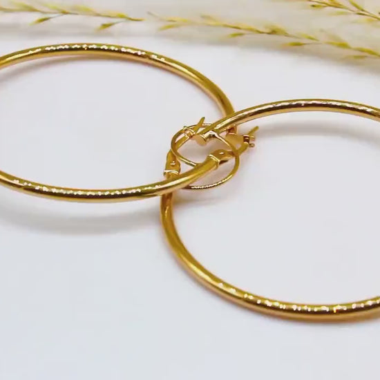 Crafted from high-quality 14k rose gold, these simple hoop earrings are timeless yet elegant. Measuring 4.3cm in diameter, they are subtle yet striking enough to add a touch of sophistication.
