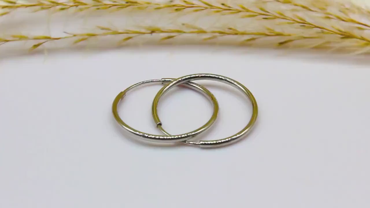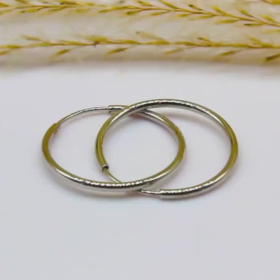 These simple hoop earrings made of high-quality 14-carat white gold are timeless yet elegant. They are available in two different versions to suit different preferences: