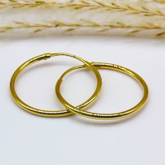 These simple hoop earrings made of high-quality 14-carat yellow gold are timeless yet elegant. They are available in two different versions to suit different preferences: