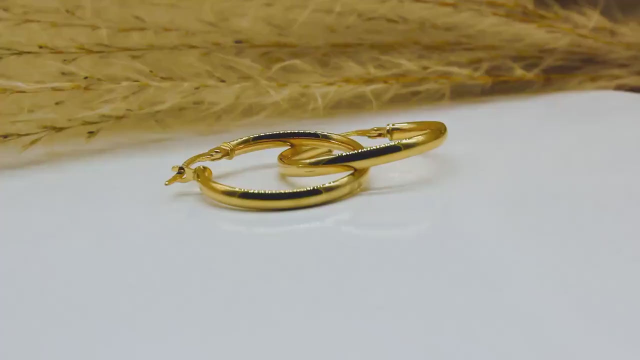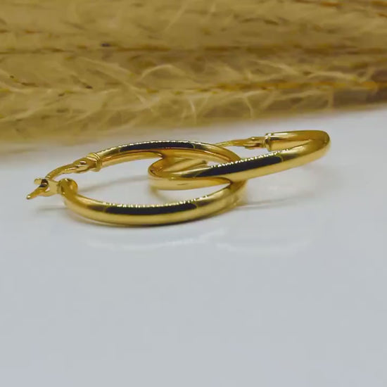 Our simple rounded hoop earrings made of 585 yellow gold are timeless pieces of jewelry that complete your look with subtle elegance and sophistication.