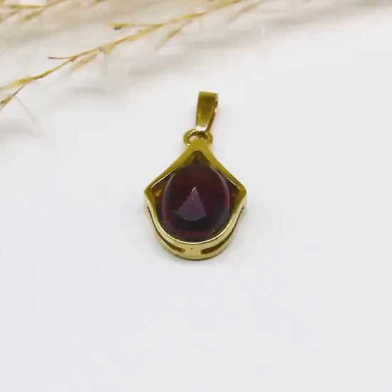 Vintage 8K Gold Anhänger mit Solitär Granat Edelstein